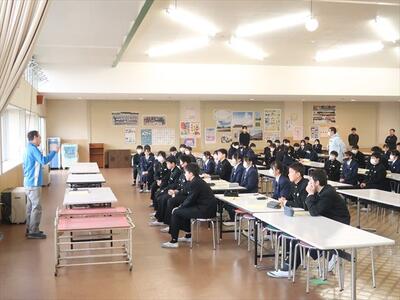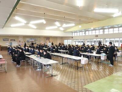 2年生は、来年度の修学旅行について、旅行代理店の添乗員さんから詳しい説明を受けました。地図やスライドを使って、最新の情報も教えていただき、大変参考になりました。修学旅行に向けてとても良い機会となりました。