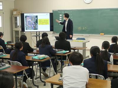 2年生は、来年度の修学旅行について、旅行代理店の添乗員さんから詳しい説明を受けました。地図やスライドを使って、最新の情報も教えていただき、大変参考になりました。修学旅行に向けてとても良い機会となりました。