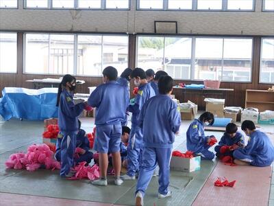 1年生は、卒業式に向けて、たくさんのお花を作ってくれました。今までお世話になった3年生に感謝の気持ちを込めて1つ1つ丁寧につくりました。