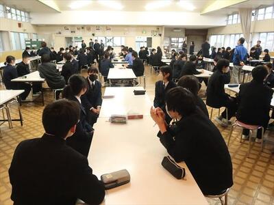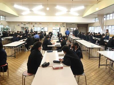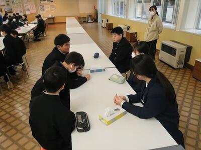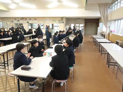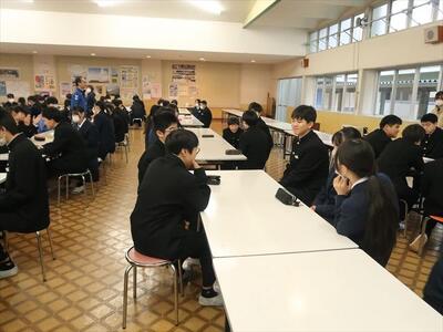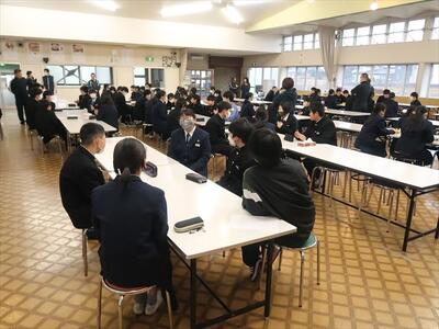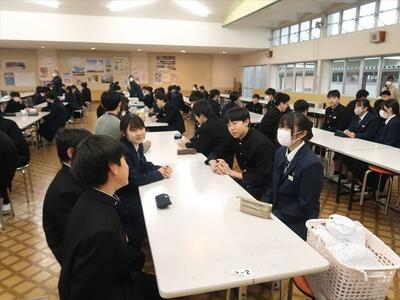 本日の朝、ランチルームでコミュニケーションタイムを実施しました。本日のテーマは「今年やってきたことと来年やってみたいこと」です。班のみんなが傾聴して聞き、質問をするなどしてより深くコミュニケーションを取ることができました。生徒の表情も穏やかで、良い雰囲気の中活動しました。