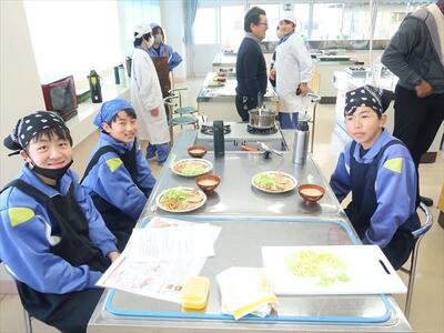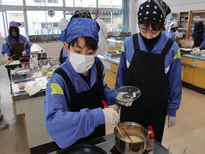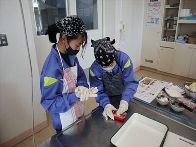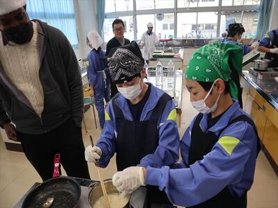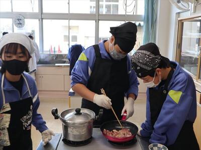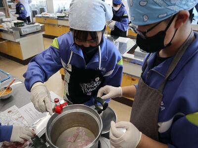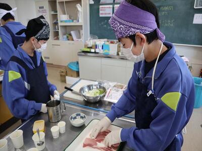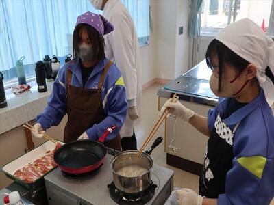 調理実習(1年1組)豚肉のしょうが焼き