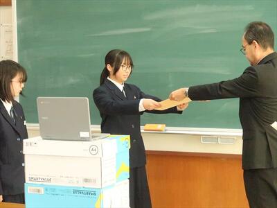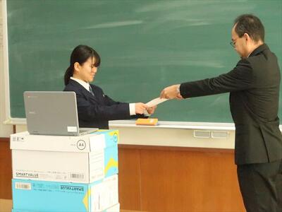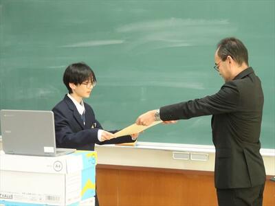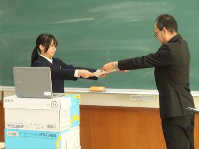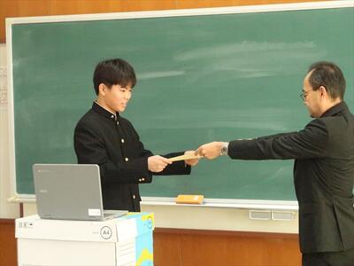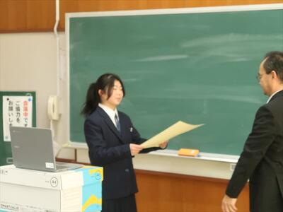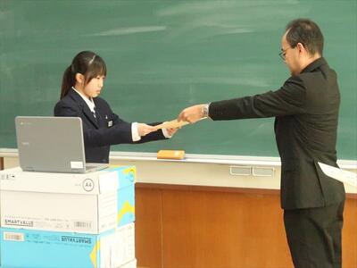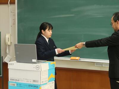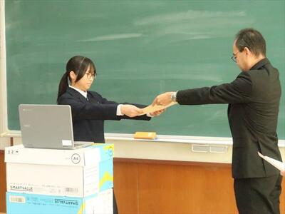 終業式の前に各種表彰をしました。受賞した生徒の皆さん、おめでとうございます。