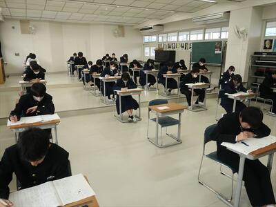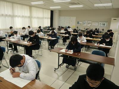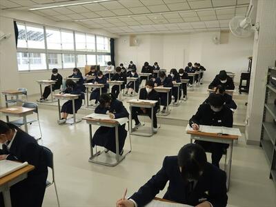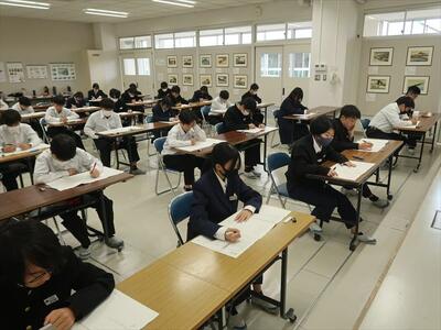 本日は、1年生、2年生が町学力テストを実施しています。国語、数学、社会、理科、英語の5教科です。真剣に、集中して問題に取り組んでいました。