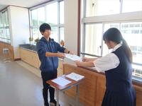 本日、学級担任から前期の通信票を生徒に手渡しました。4月~10月前半までの学習や生活、部活動などについて頑張った点や改善点などを生徒と一緒に確認しながら手渡しました。