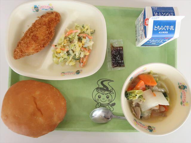 今日の白身魚フライは、タラを使用しています。タラの名前は、体の側面にあるまだら模様に由来し、まだらから「ま」が取れて「たら」になったという説や、雪の降る季節に多く獲れ、身が雪のように白いことから「雪の魚」を意味する「鱈」という漢字が当てられたという説があります。