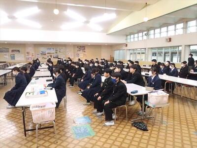 2年生は、来年度の修学旅行について、旅行代理店の添乗員さんから詳しい説明を受けました。地図やスライドを使って、最新の情報も教えていただき、大変参考になりました。修学旅行に向けてとても良い機会となりました。